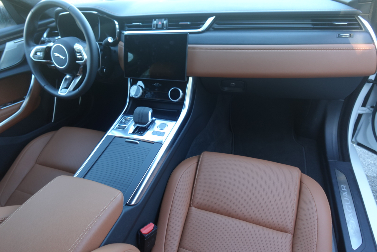 One Owner Low Miles 2024 Jaguar XF Fuji White with Siena Tan Perforated Leather Interior .
