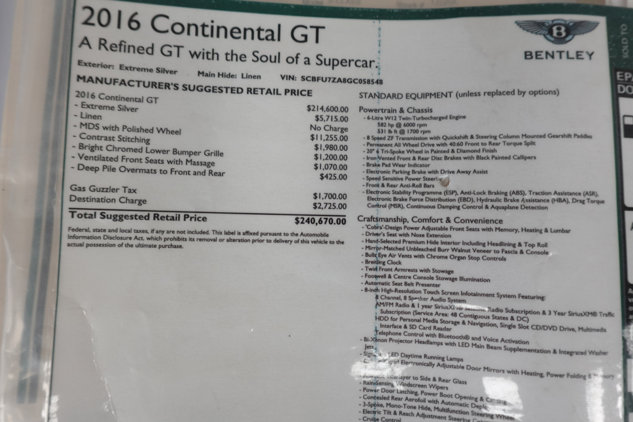 Very Nice Low Miles 2016 Bentley Continental GT Extreme Silver with Linen Leather interior .