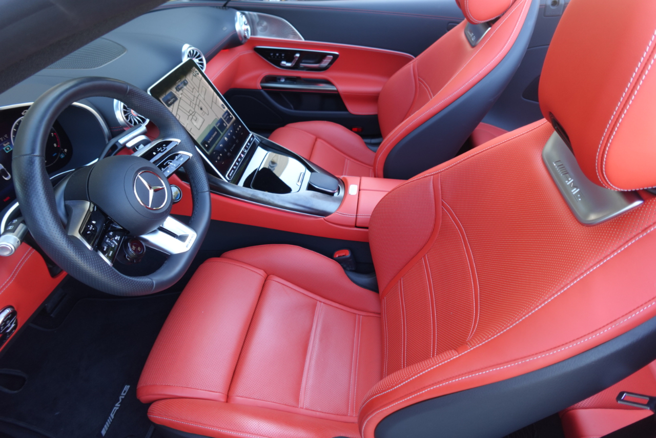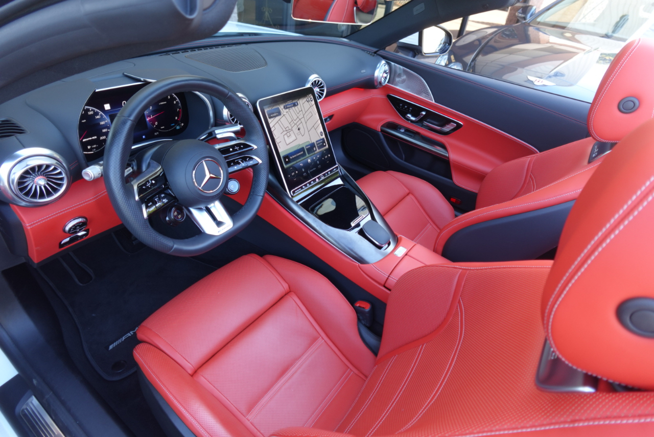Low Miles 2023 SL43 AMG Moolight White with Red Pepper /Black Nappa Leather .