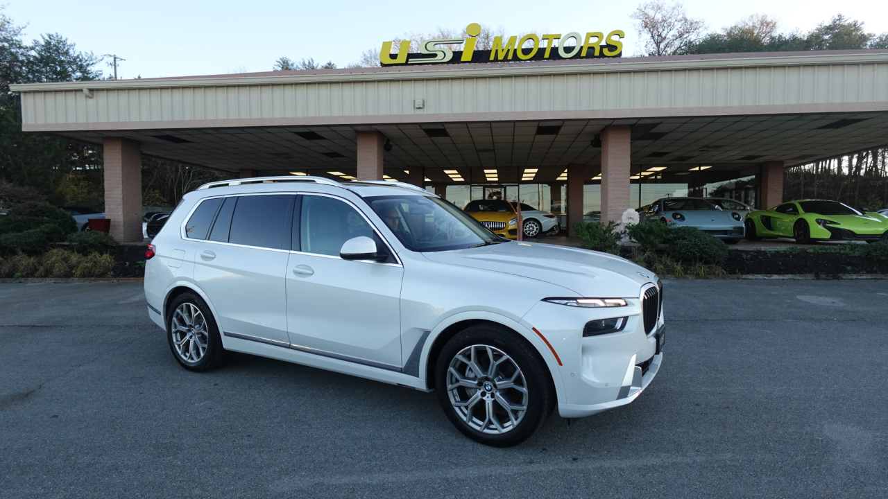 Low Miles 2024 BMW X7 Mineral White with Black Leather interior .