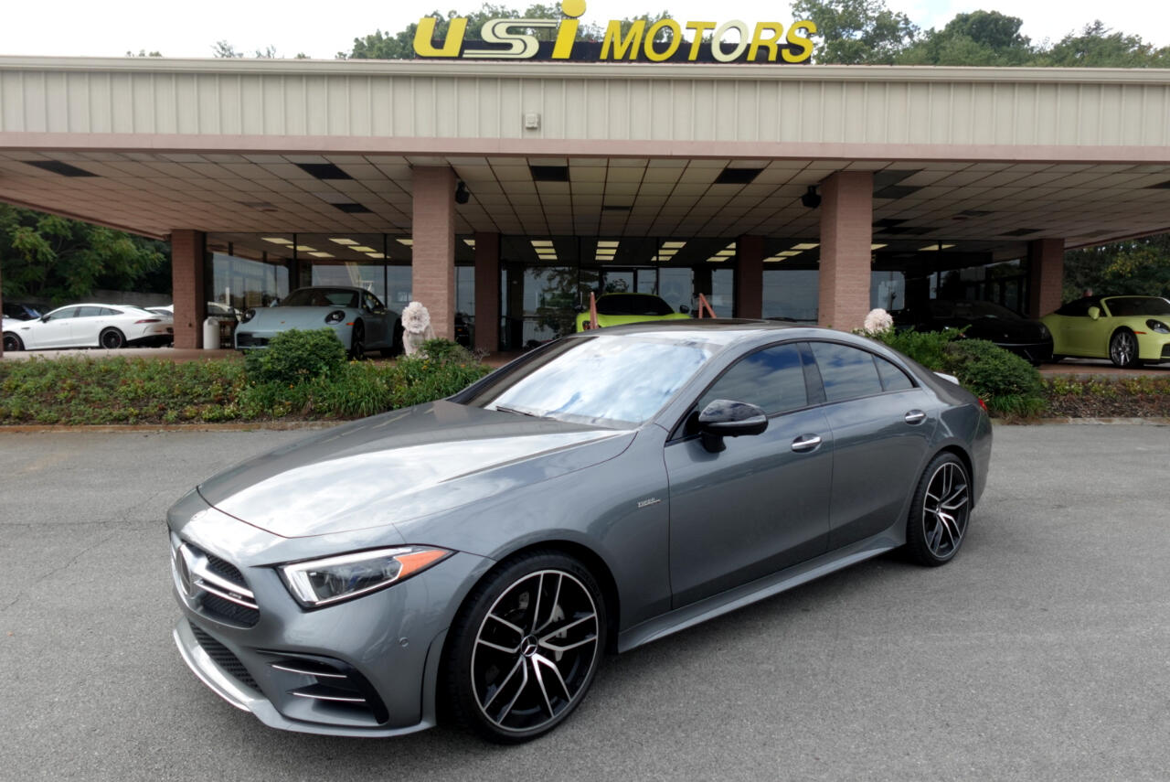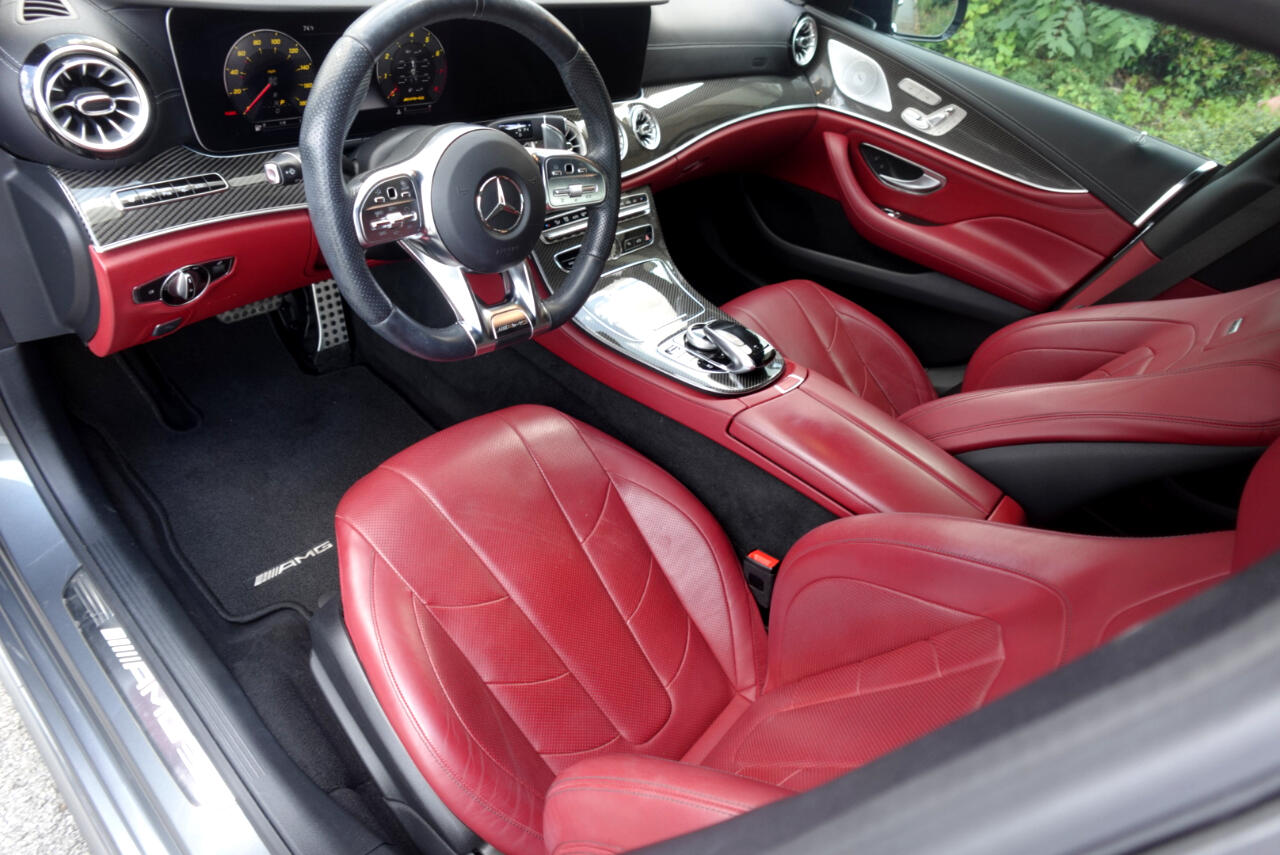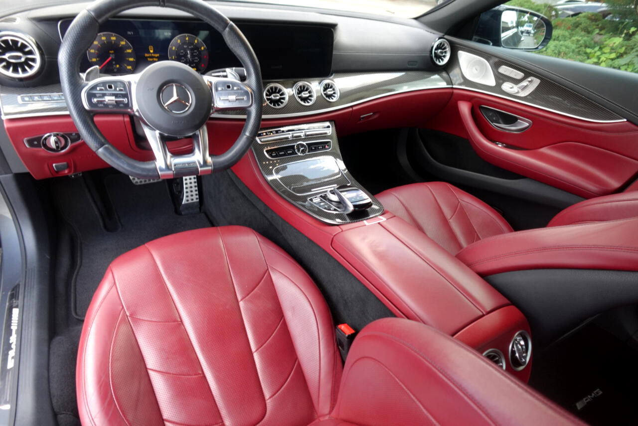 2019 Mercedes Benz AMG CLS 53 S Selenite Gray Metallic with AMG Bengal Red/Black Nappa Leather and AMG Carbon Fiber .