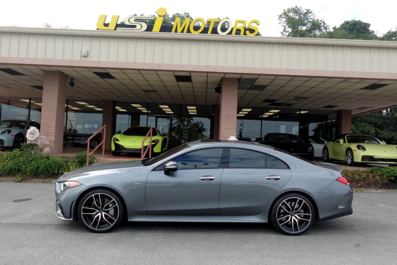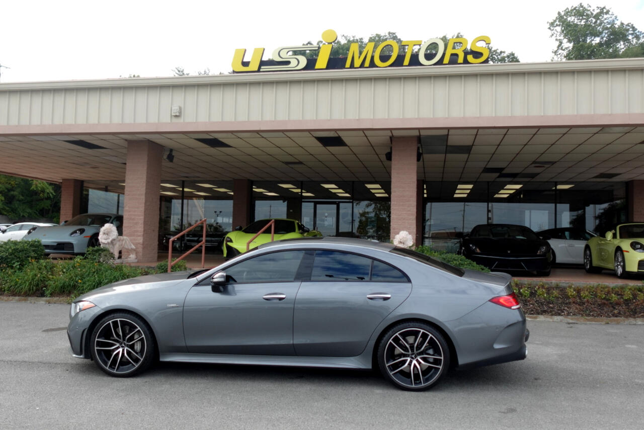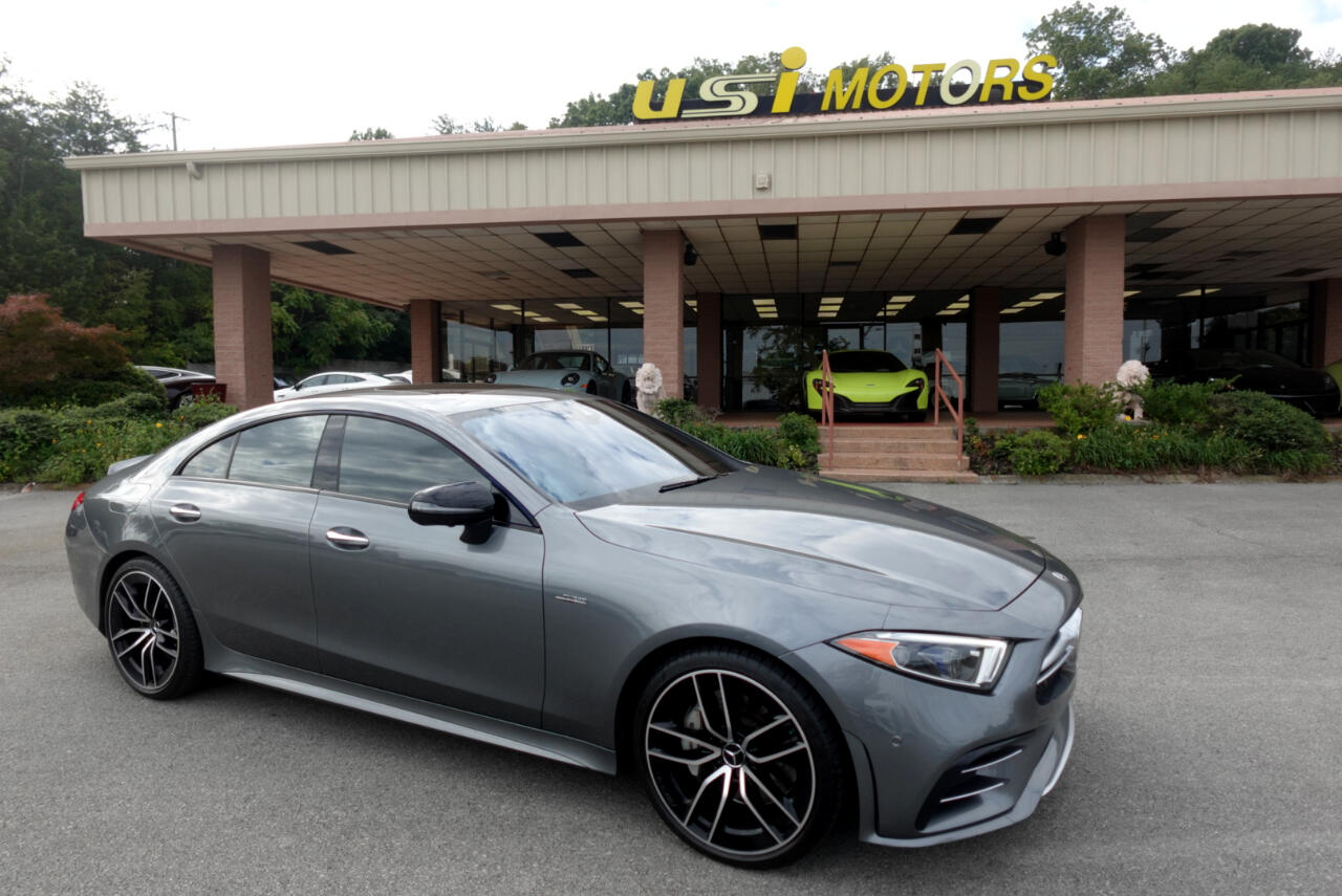 2019 Mercedes Benz AMG CLS 53 S Selenite Gray Metallic with AMG Bengal Red/Black Nappa Leather and AMG Carbon Fiber .