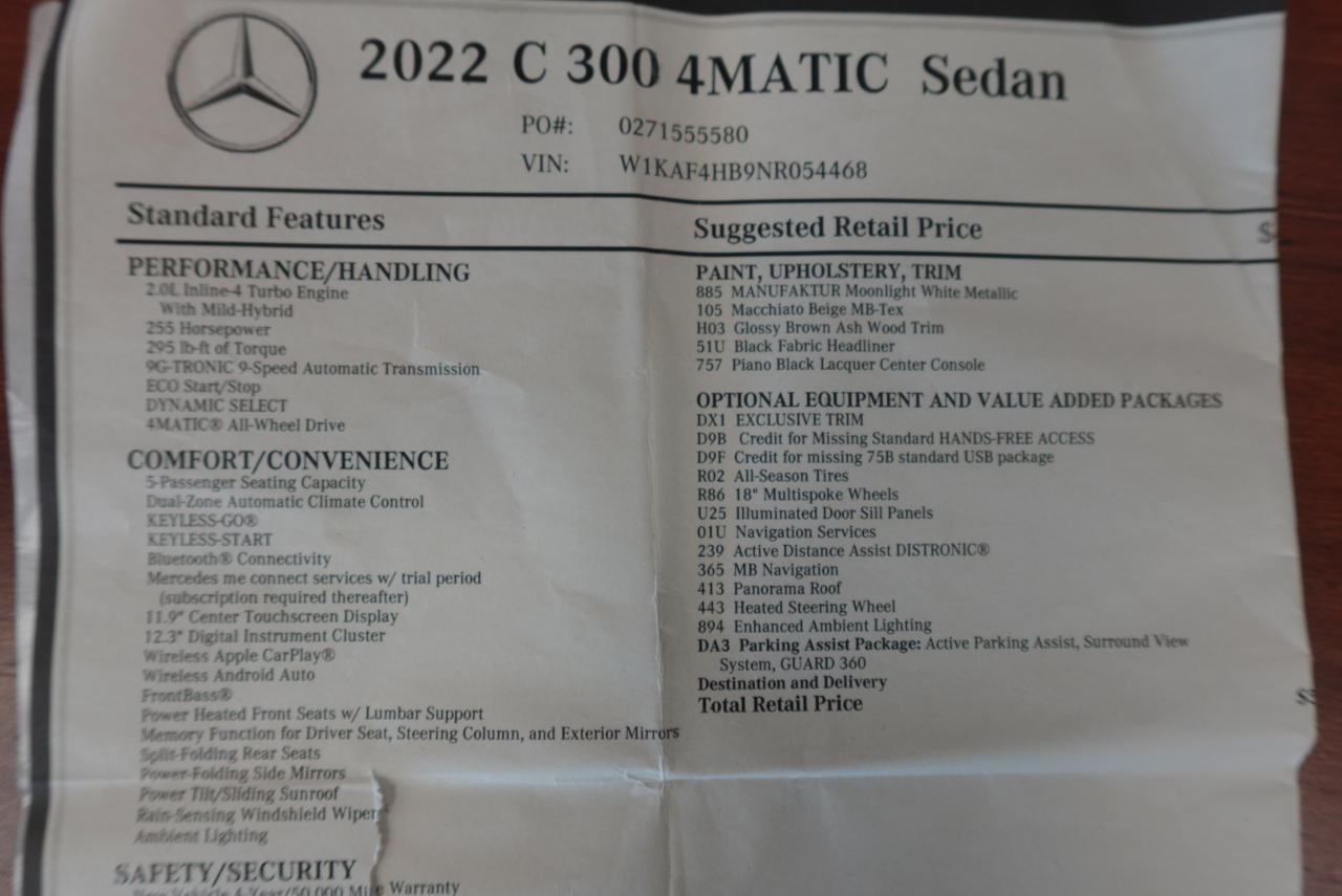 2022 Mercedes Benz C300 4Matic Moonlight White Metallic with Macchiato Beige Interior .