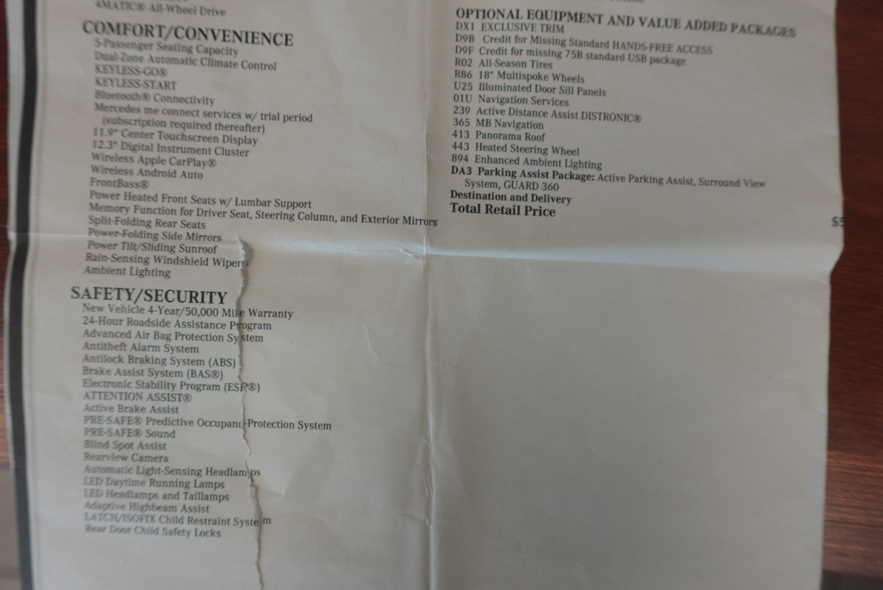 18" Multi spoke Wheels , Illuminated Door Sill Panels , Navigation Services , Active Distance Assist Distronic , MB Navigation , Panorama Roof , Heated Steering Wheel , Enhanced Ambient Lighting .